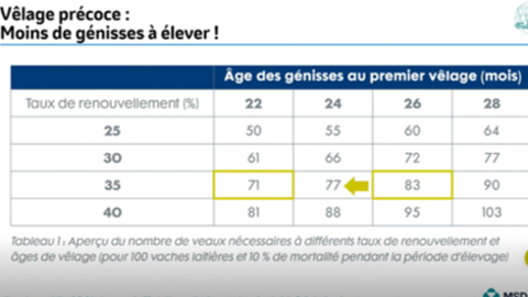 À situation égale, le vêlage précoce nécessite d’élever moins de génisses.