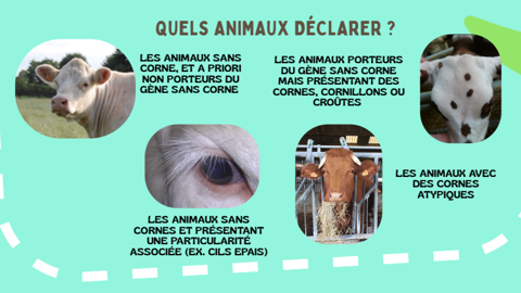 Les résultats permettront de mettre en évidence de nouveaux variants génétiquesdont certains contribueront à l’élaboration de nouveaux tests génétiques, et de fournir des éléments objectifs sur les carrières des animaux sans cornes.