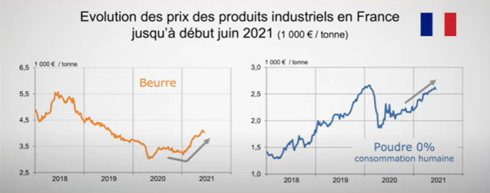 Cette remontée intervient dans un contexte de stabilisation de la production laitière en Europe début 2021 : sur douze mois, elle a progressé « de seulement 0,8 % » dans l’UE à 27, quand elle a progressé de 2,9 % en Nouvelle-Zélande et de 2,5 % aux États-Unis.
