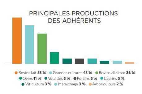 - Productions :bovins lait (53 %) >grandes cultures (43 %) > bovins viande (36 %)
