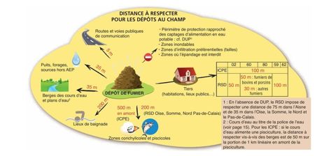Il est recommandé « d’éloigner les tas des futures parcelles de pommes de terre, ainsi que des fossés, ruisseaux, rivières, habitations, et de les placer en dehors de tout périmètre de captage ».